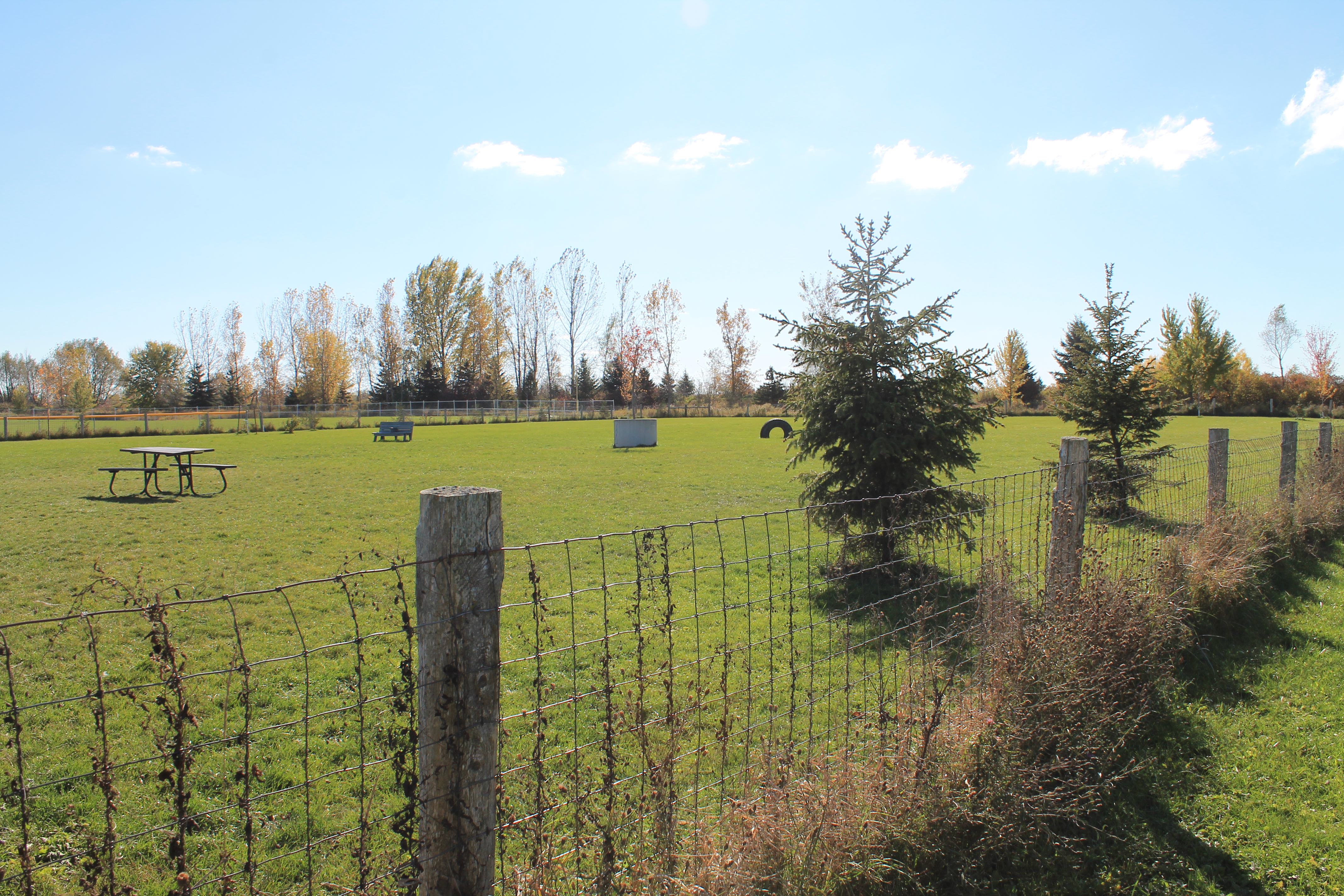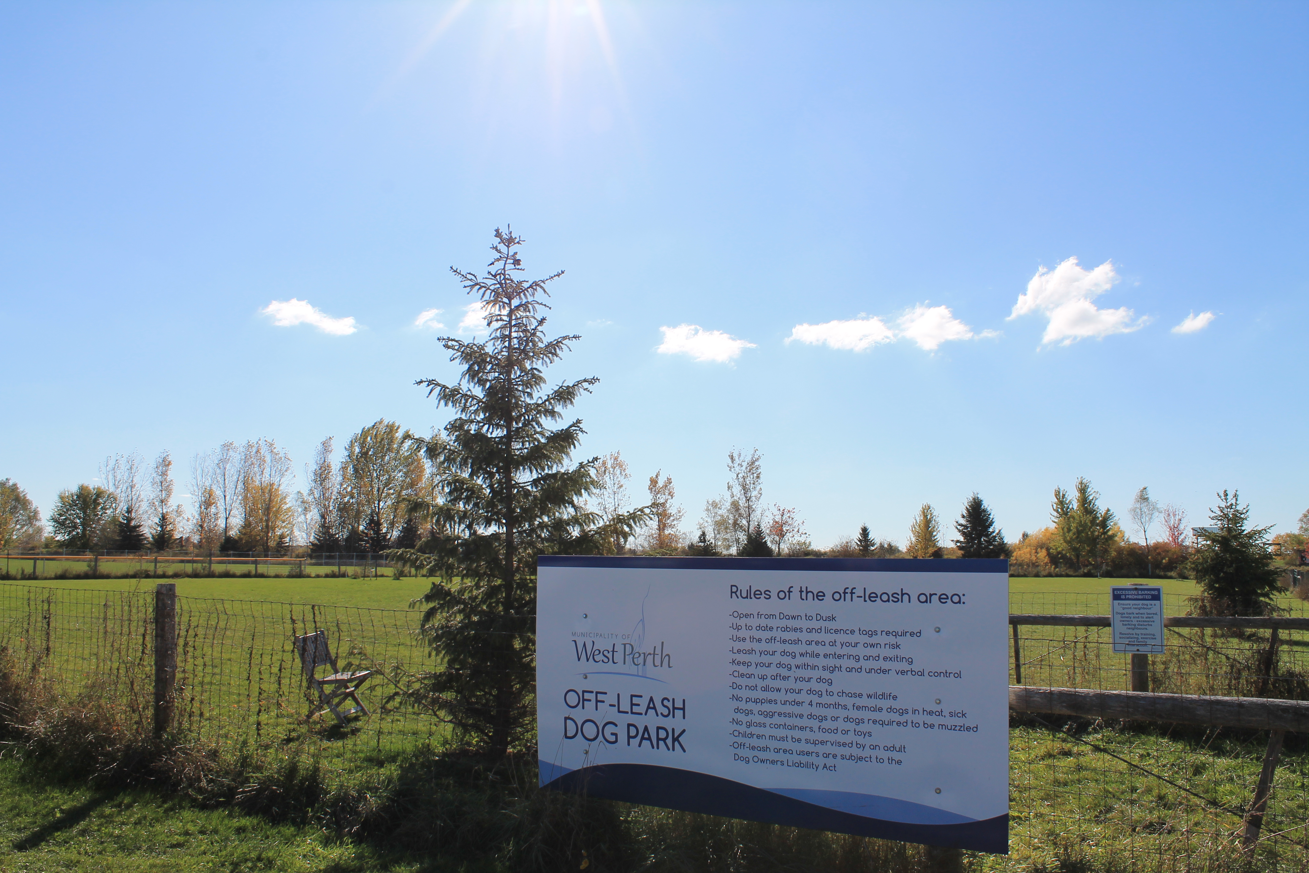 The park is located in Mitchell on Frank Street just off of Wellington Street. It is a safe haven from traffic and other hazards so our best friends can frolic and socialize safely. There is 60,000 sq ft. featuring open green space, controlled gate access, and is close to washrooms. The park is open from April to November from dawn until dusk.