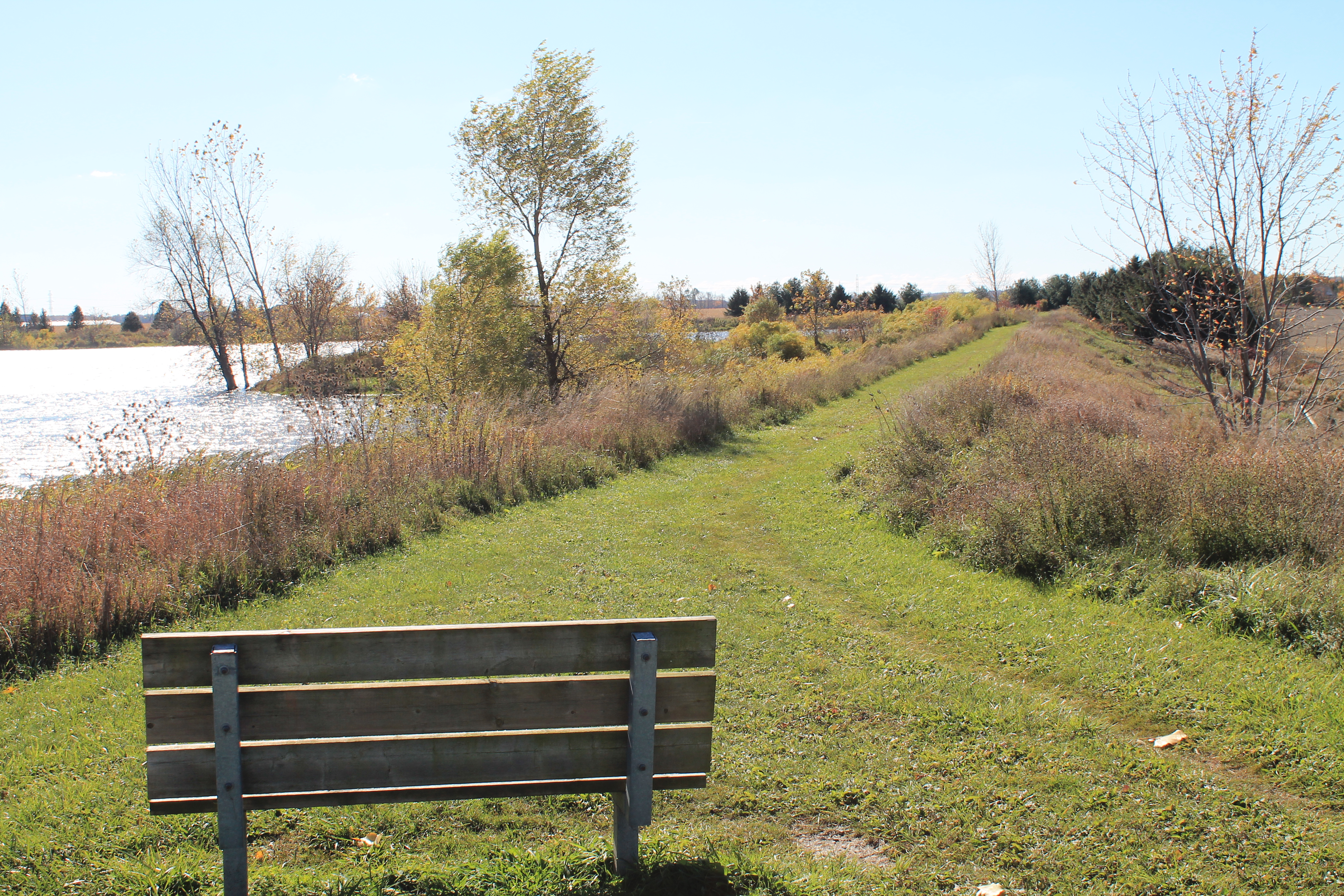 The Wetlands are at the south end of Mitchell, Ontario. Proceed down Frank St until you see Kinsmen Park and a baseball diamond. Turn right at the diamond and follow the road to the end where you can park.