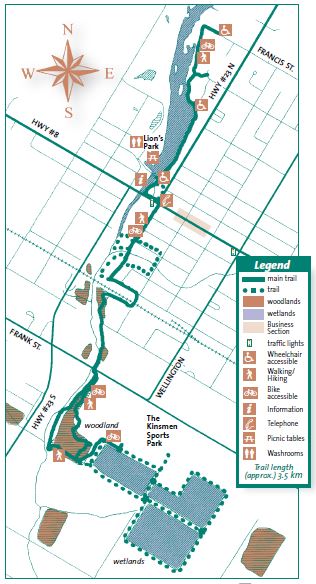 The North and middle sections of the trail are accessible for baby strollers, motorized scooters and wheelchairs while the southern section is more rugged and naturally scenic.