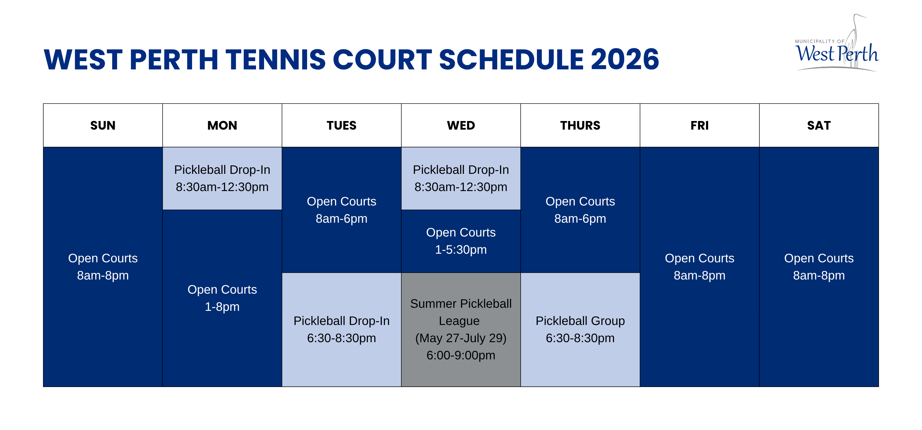 Tennis and Pickleball Courts are closed for the season, please stay up to date with our Facebook or this page for opening date in 2026!